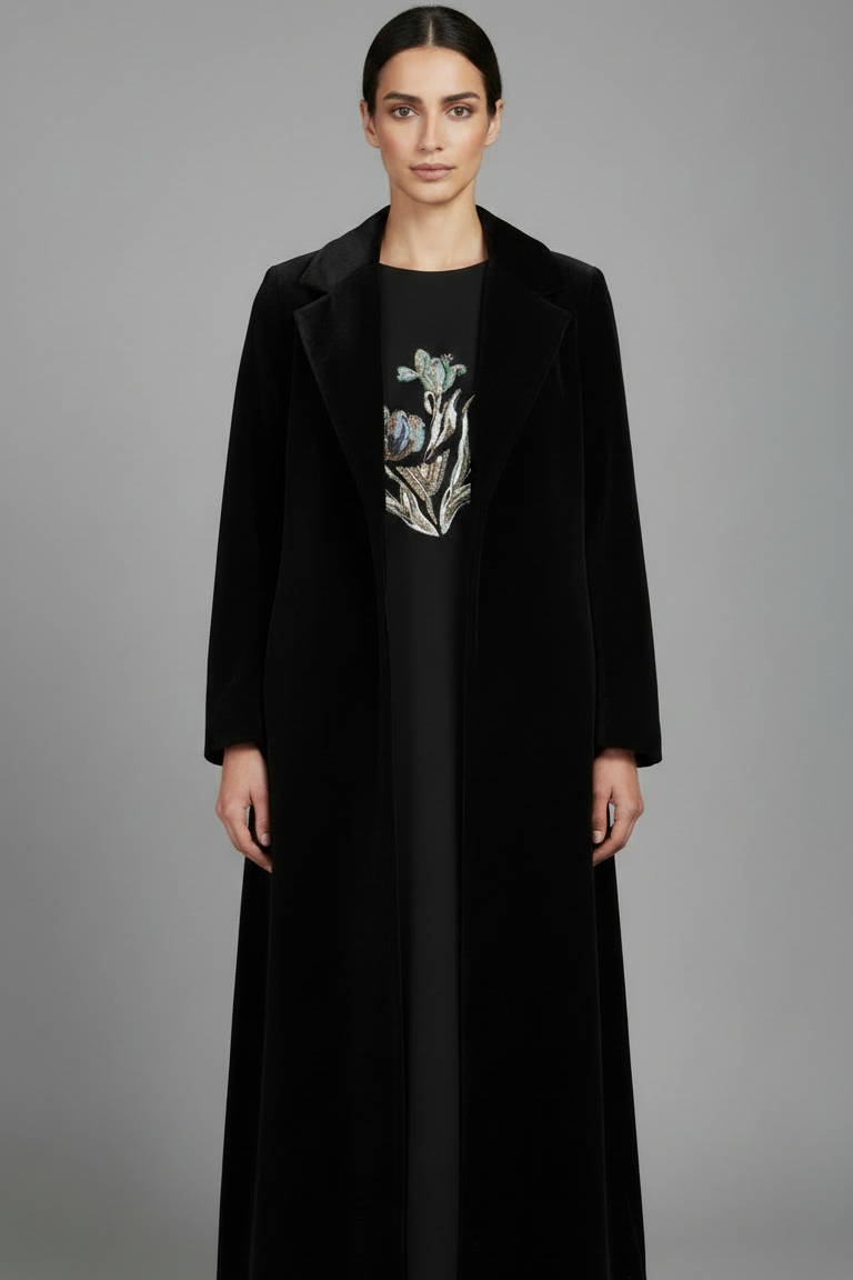 Abaya with Raw Cuba Black Blazer with Pockets and Breaks