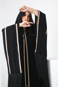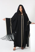 عباية كريب سوداء سادة مفتوحة.