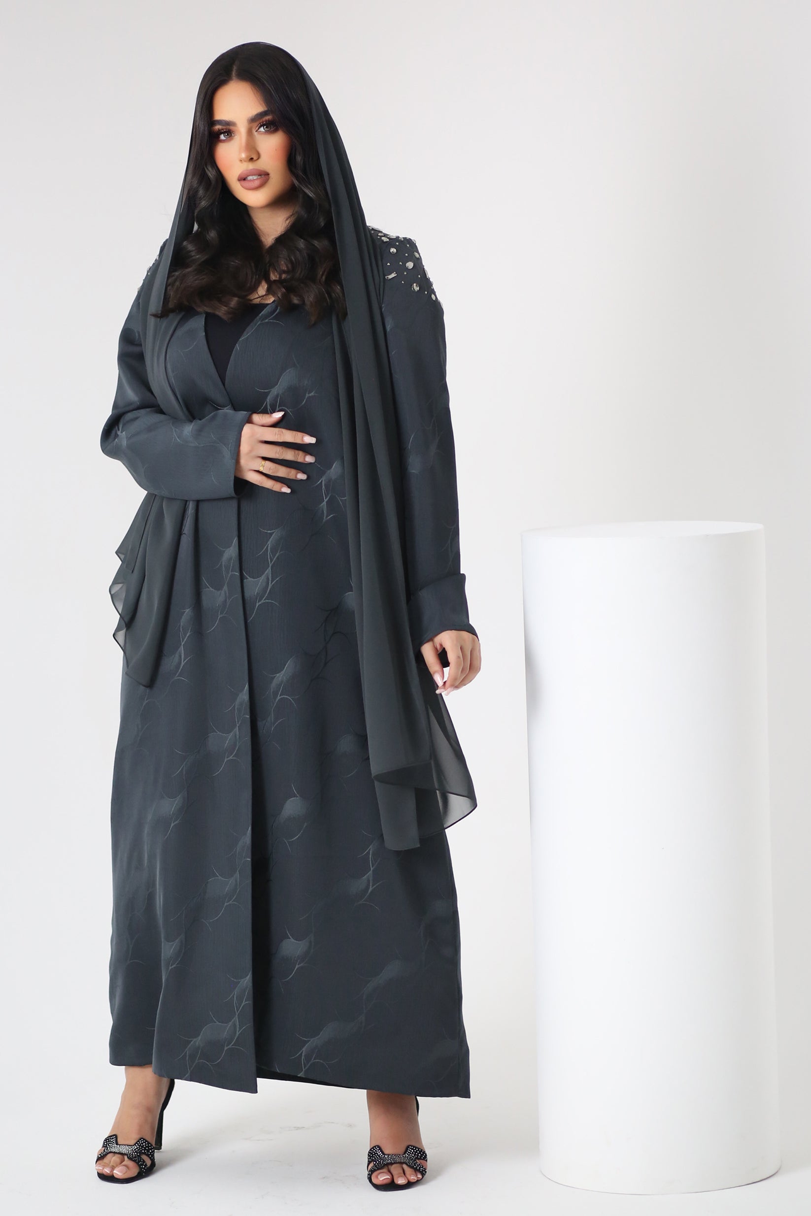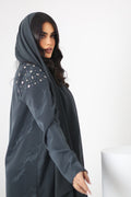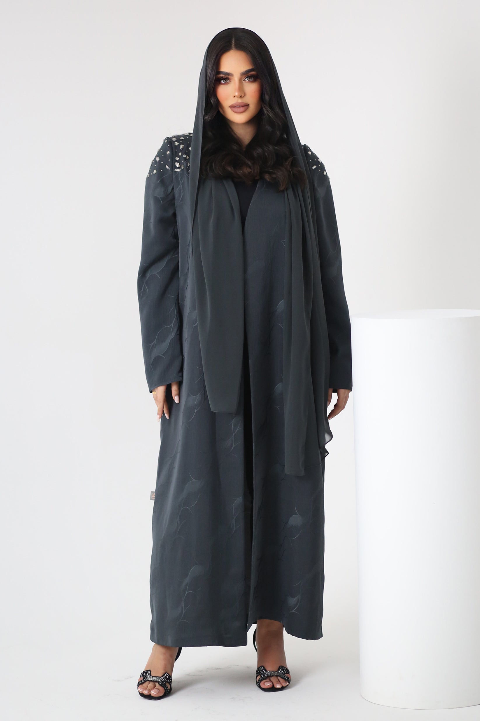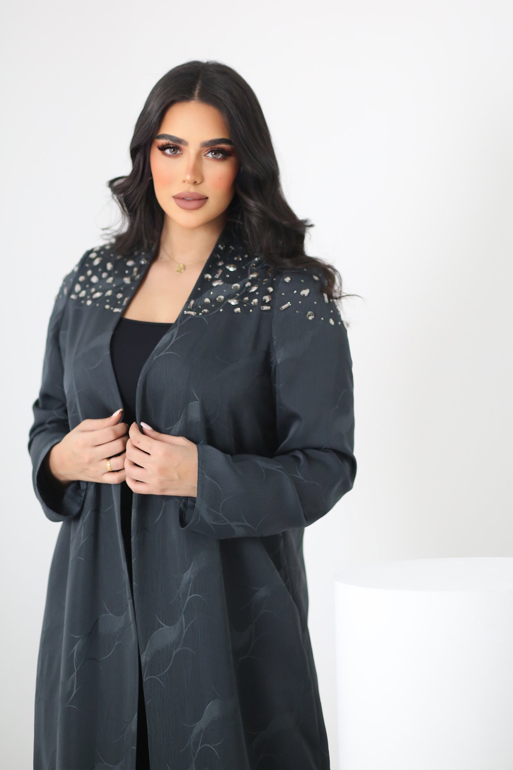 عباية أنيقة حقًا تأتي مزينة بالكريستال على الكتف لتمنحك مظهرًا أنيقًا وأنيقًا. قم بمطابقتها مع القماش والظلال لإكمال المظهر