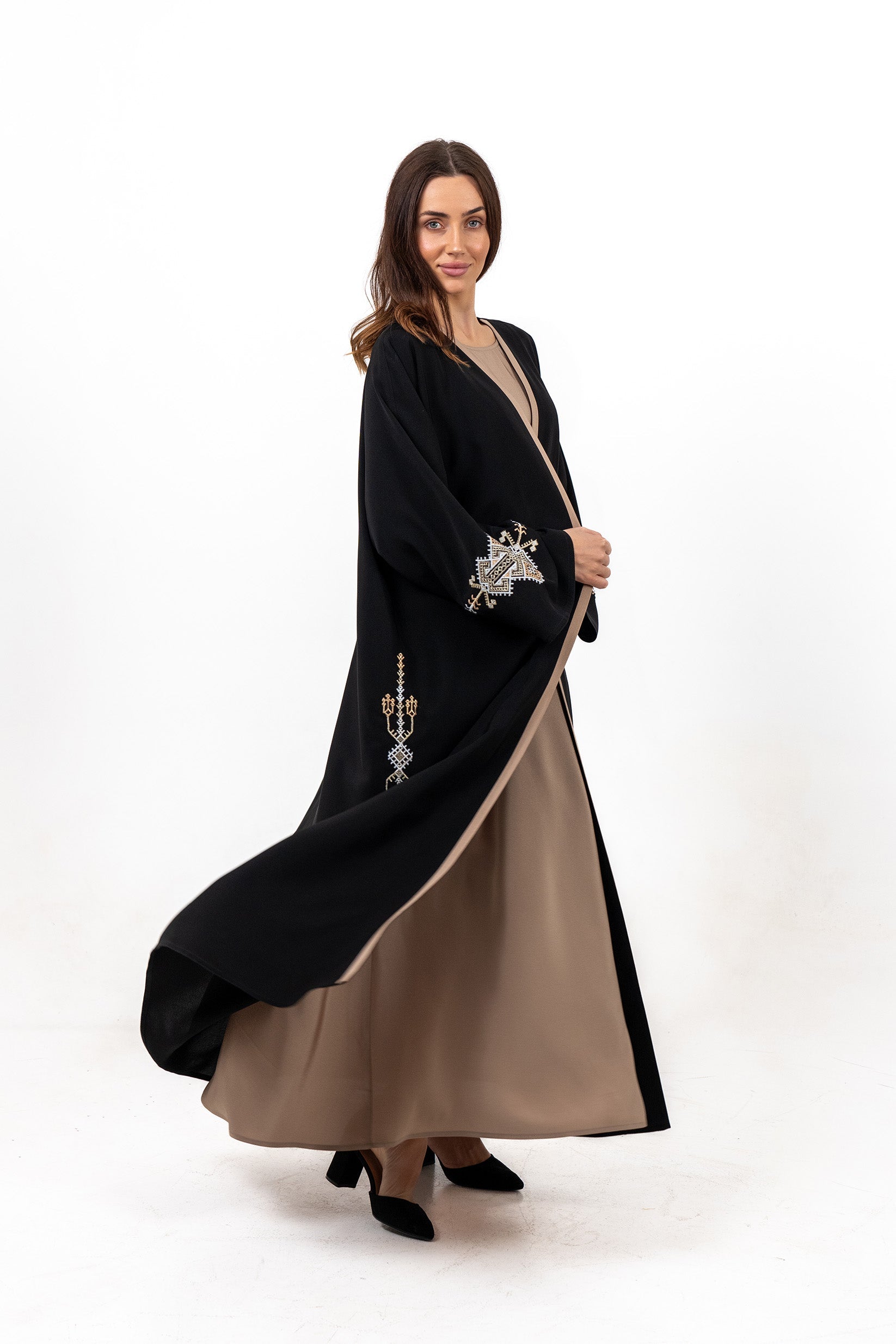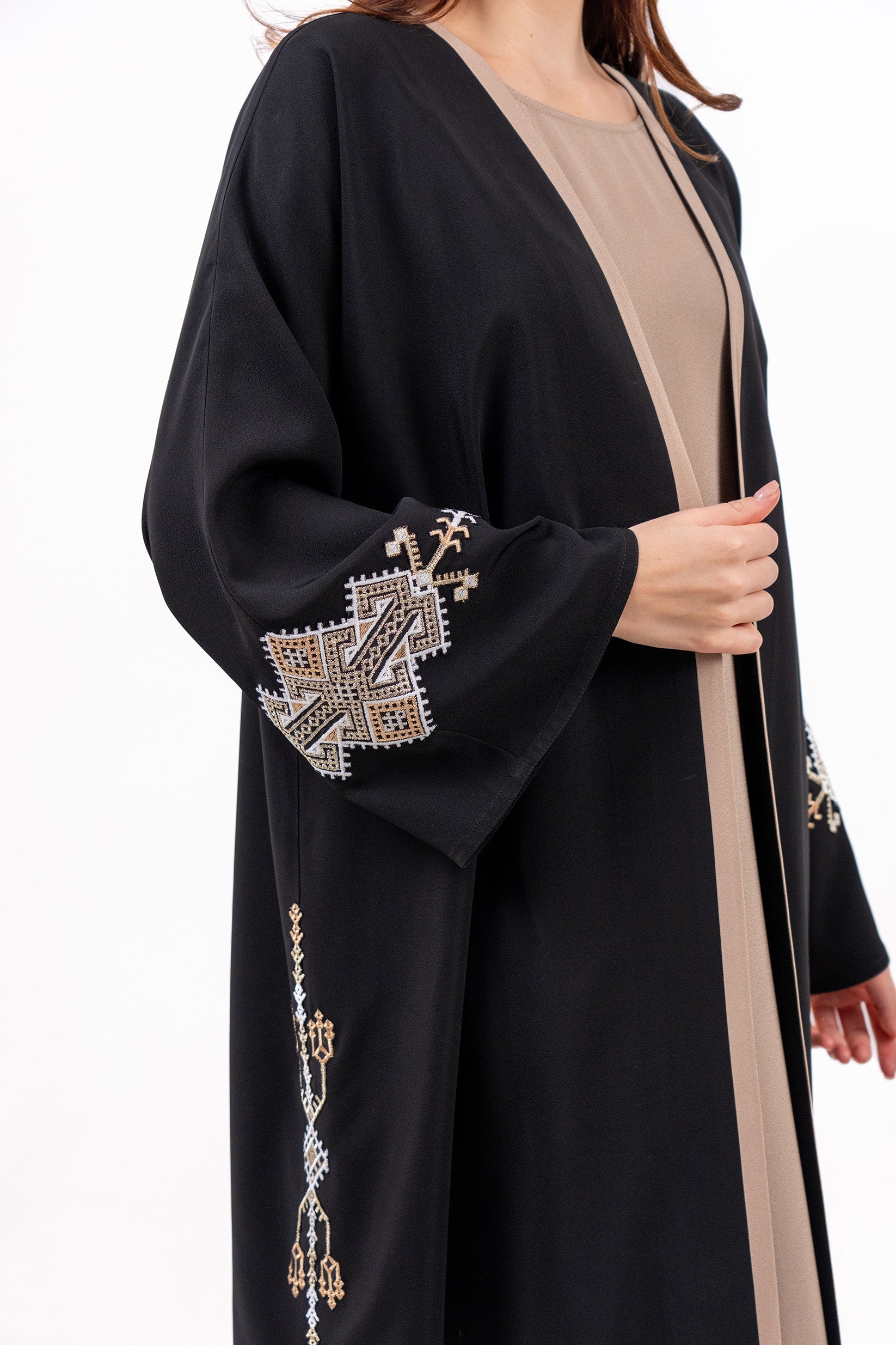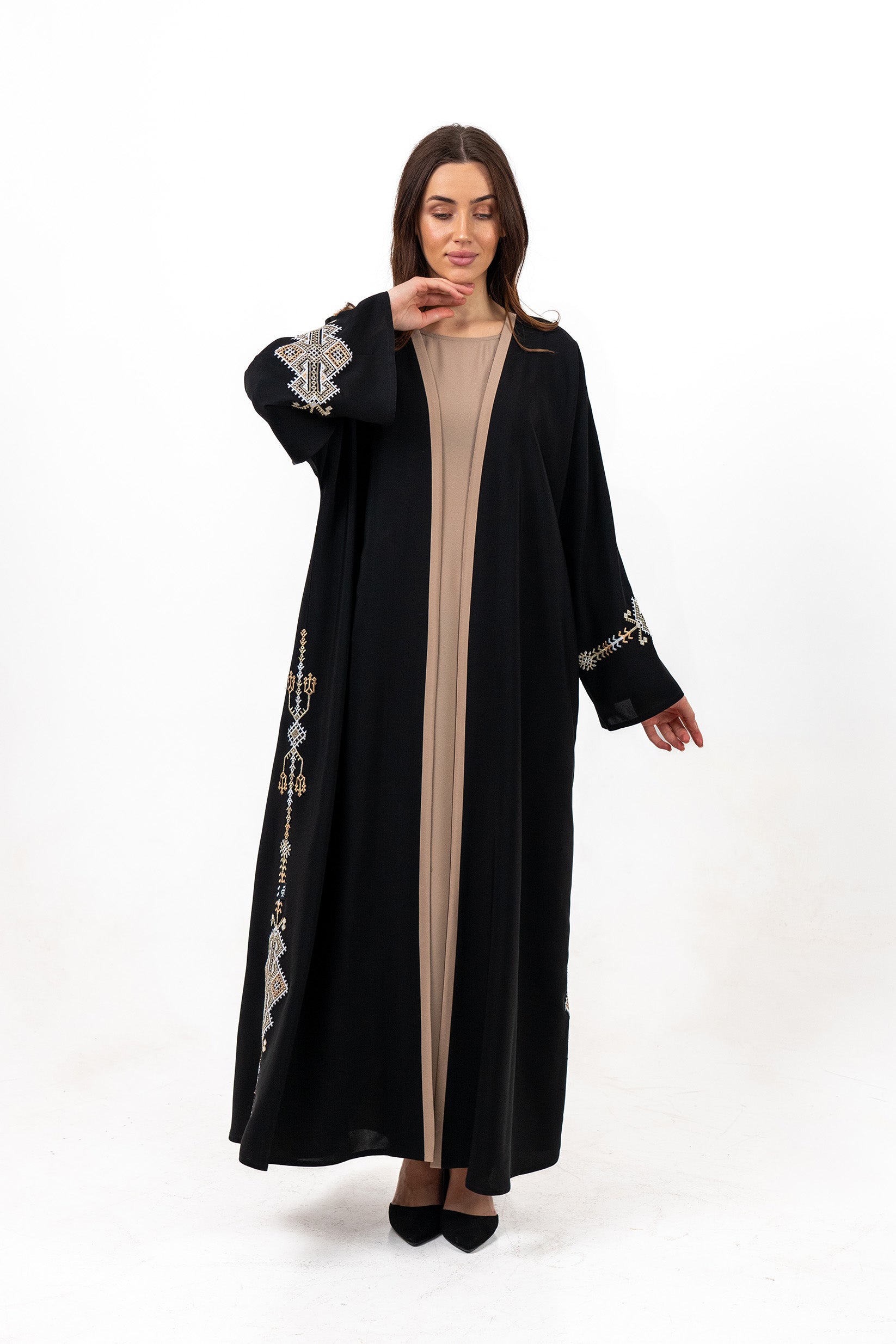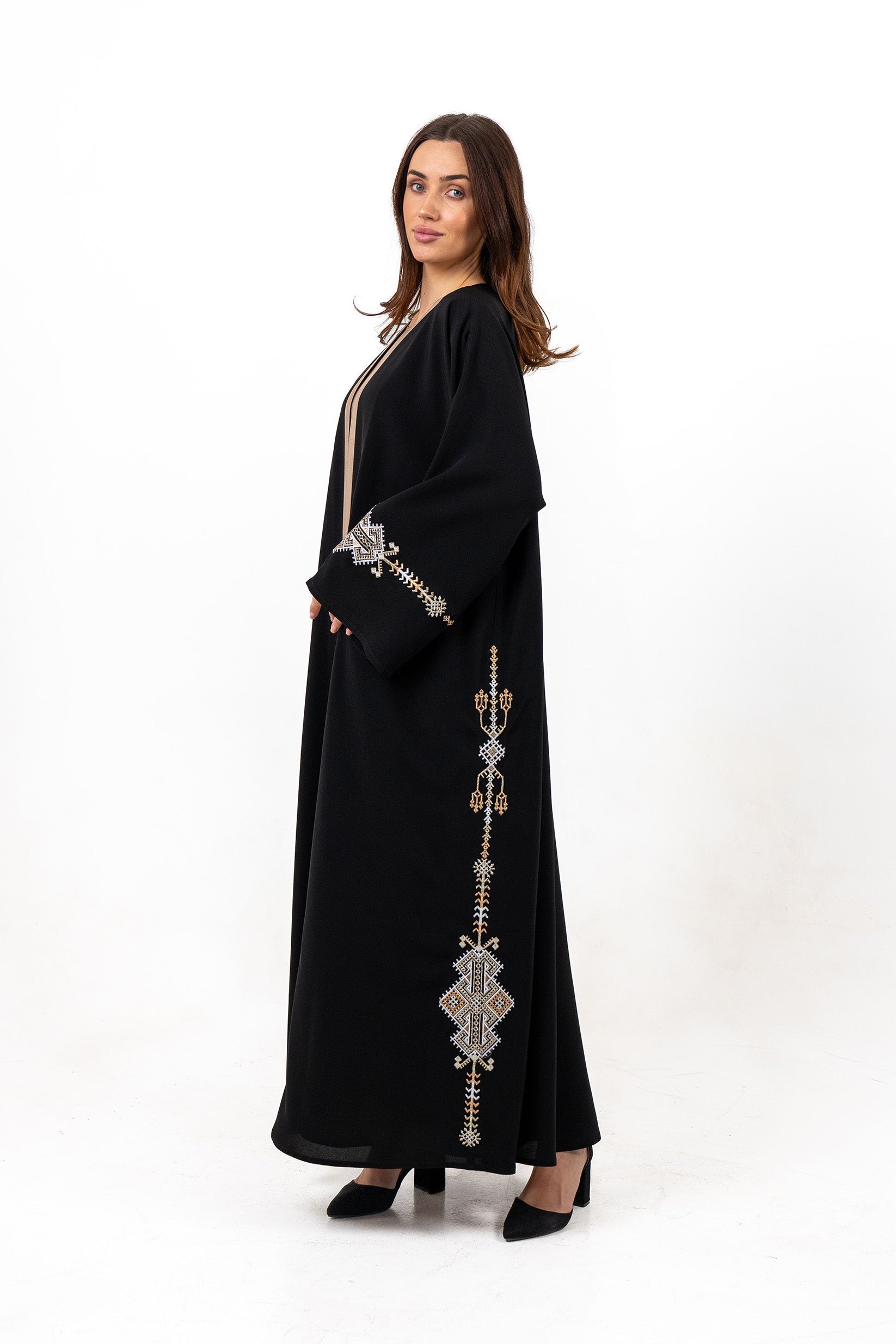 عباية أنيقة مطرزة بألوان جميلة على الجوانب والأكمام