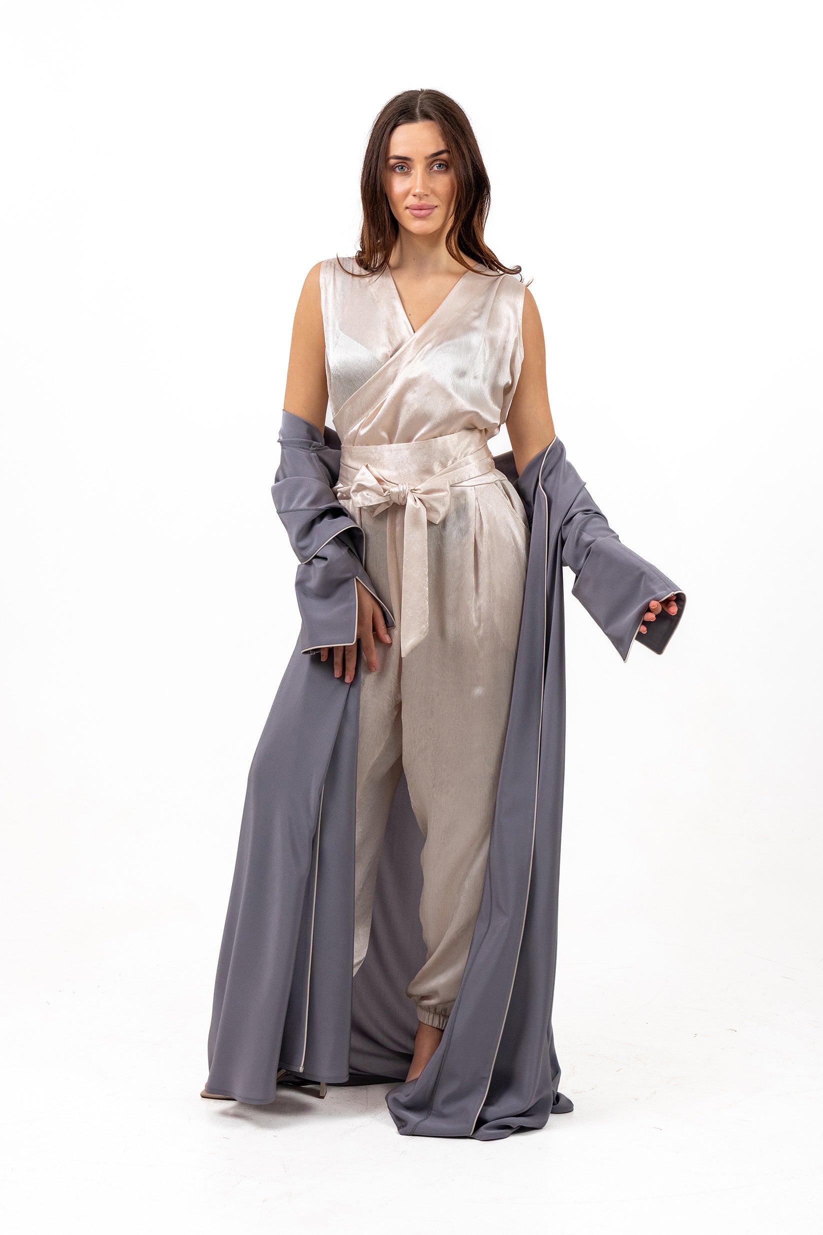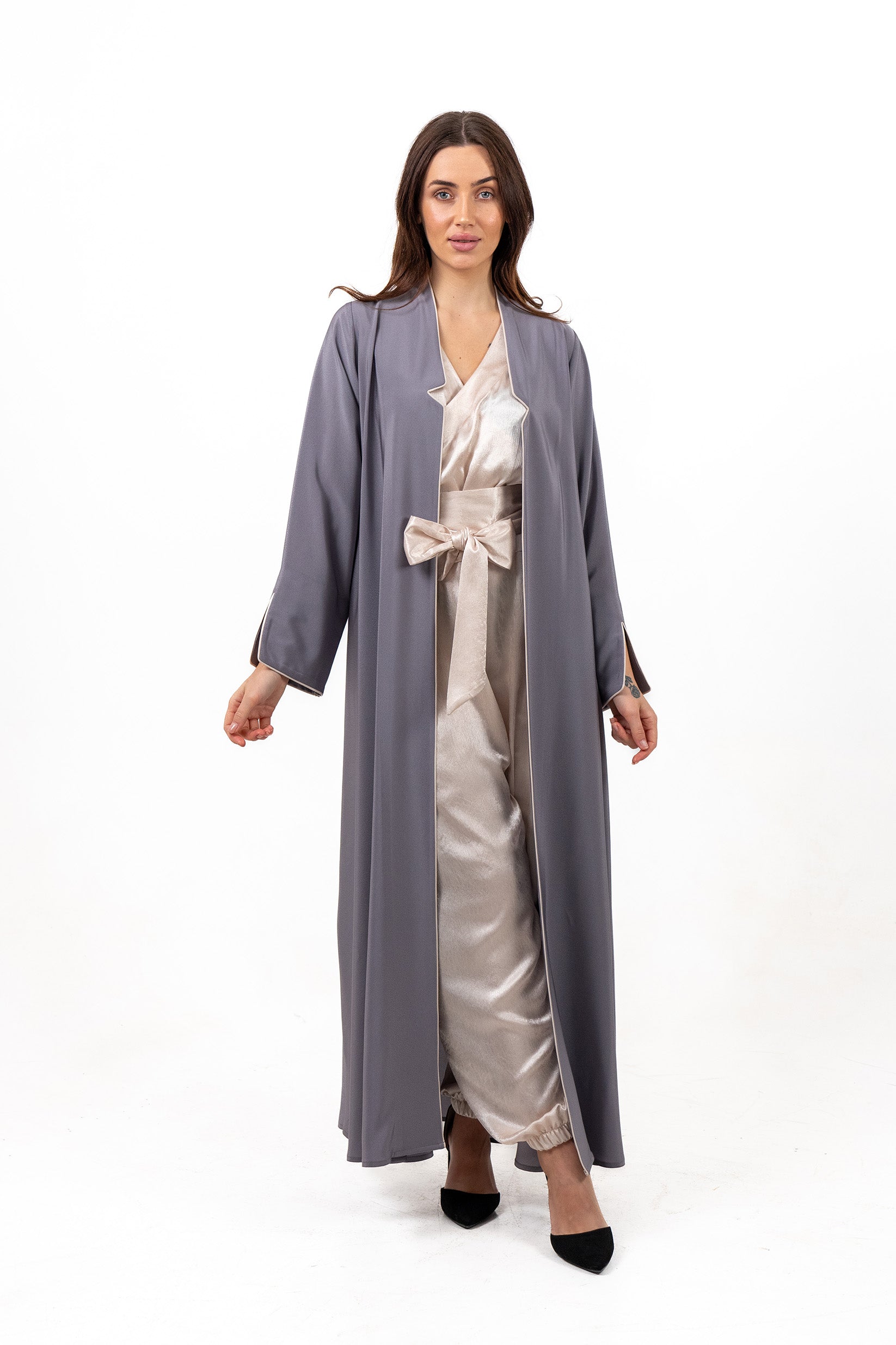 عباية مفتوحة باللون الرمادي
