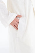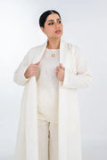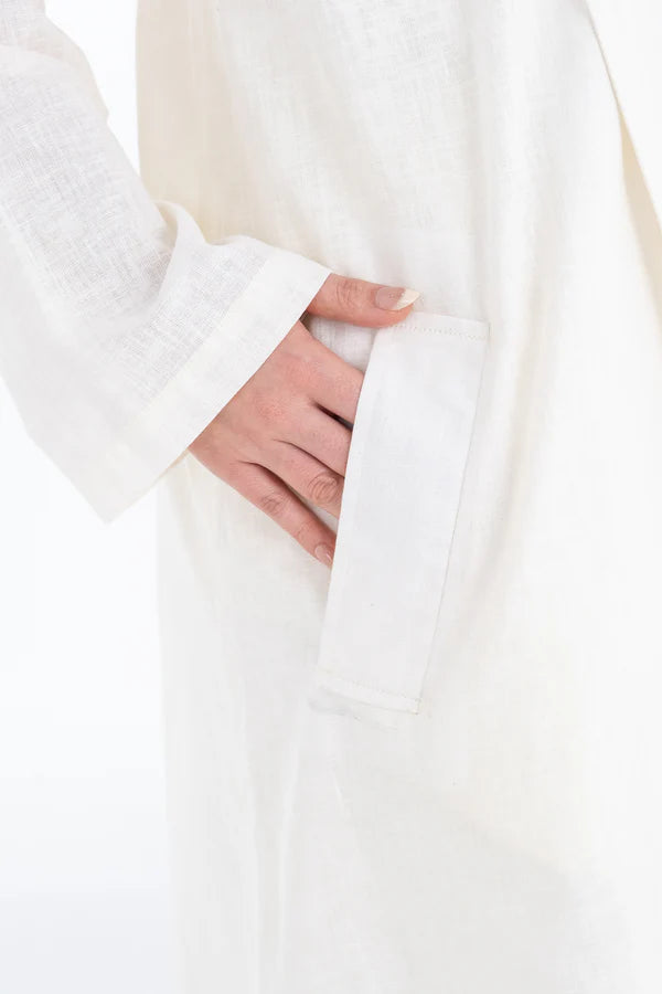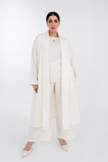 طقم عباية مفتوح عصري من الكتان باللون الأبيض الفاتح