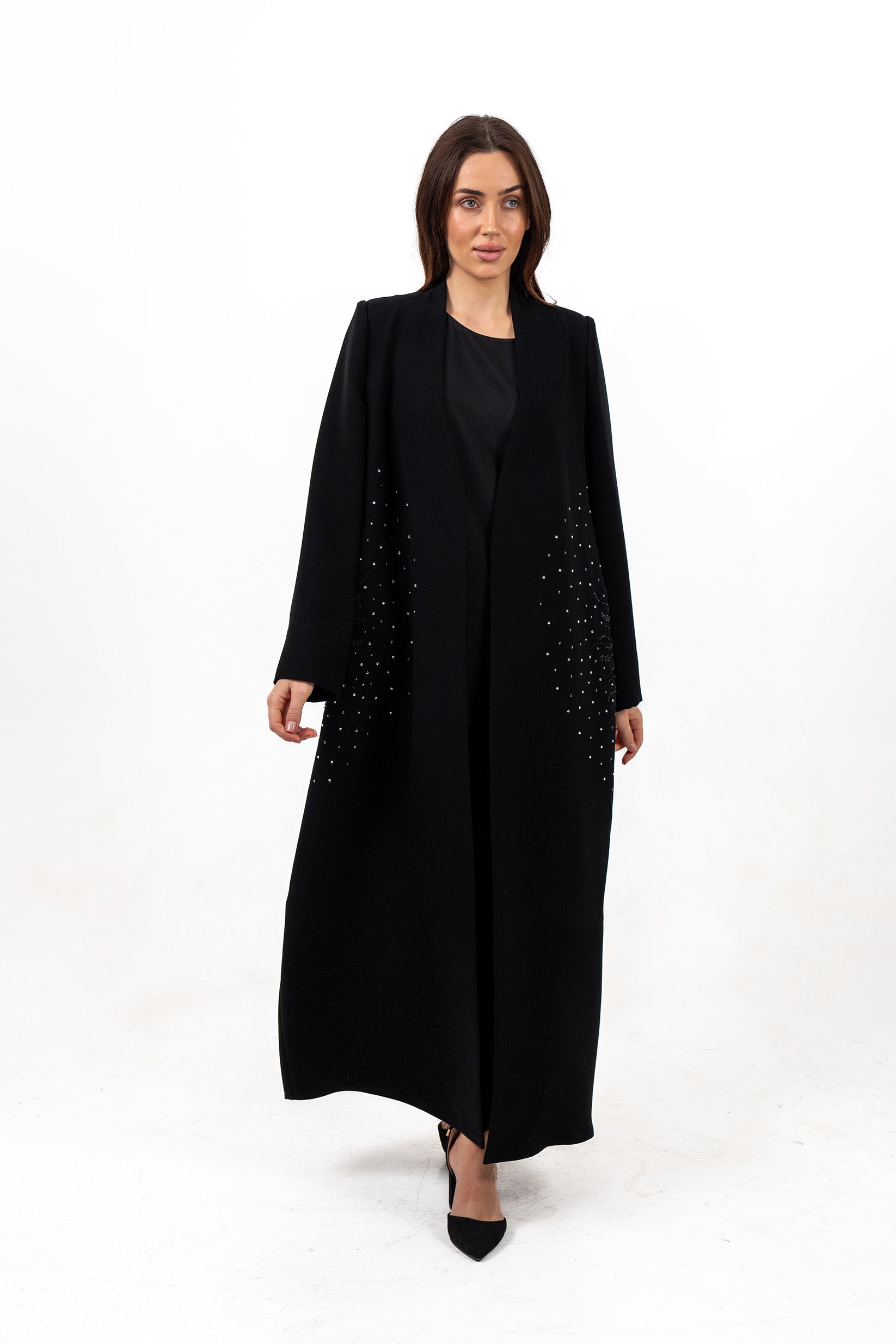 BLACK EMBROIDERED STAN FAY OPEN ABAYA