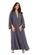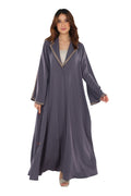 GREY HAND EMBRODERED CREPE OPEN ABAYA