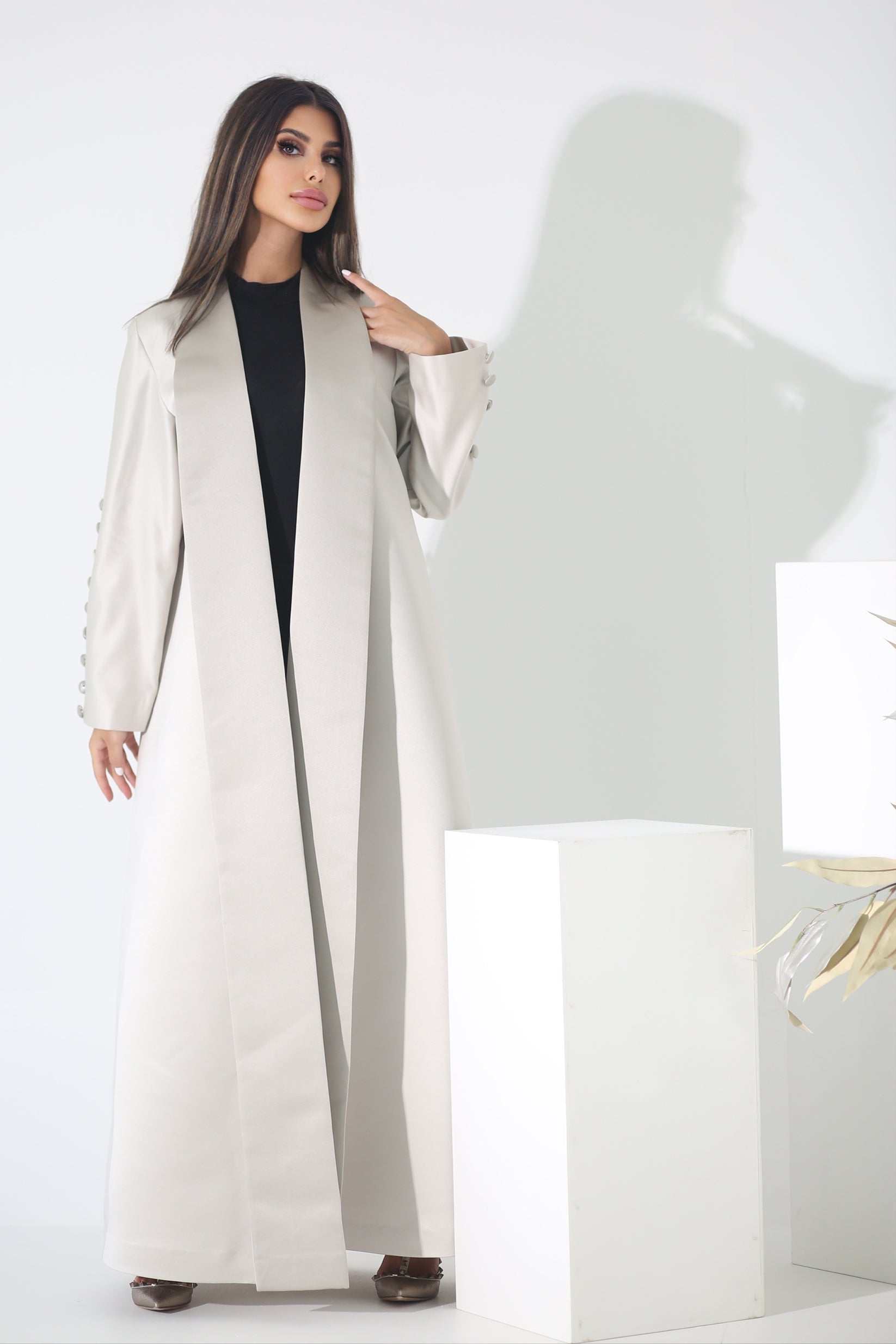 BEIGE BUTTONED BLAZER  SATIN ABAYA
